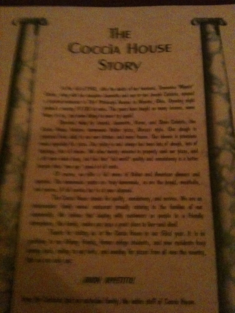 Coccia House Pizza, located in Wooster, OH, is a casual yet classy Italian pizza joint that offers a variety of options for every diner. From traditional starters like the Homemade Provolone Sticks to their famous Cold Antipasto salad, there is something for everyone. The pizza menu is extensive, ranging from classics like Plain and Works to customizable options with a variety of toppings. The restaurant also caters to vegetarians with many meat-free choices. Additionally, Coccia House Pizza provides a range of amenities such as takeout, delivery, outdoor seating, and a full bar. With a welcoming atmosphere and delicious dishes, Coccia House Pizza is a must-visit for pizza lovers in the area.